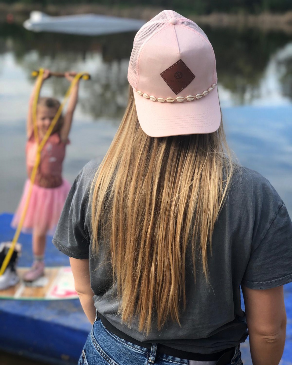 Przepiękna czapka truckerka z daszkiem w kolorze pudrowego różu.